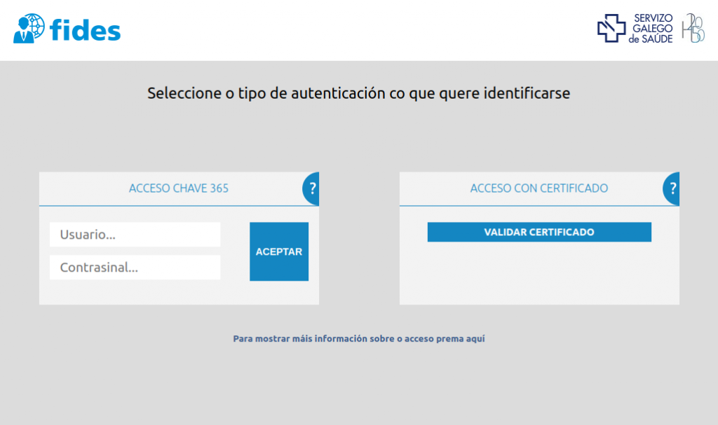 Para acceder necesitarás un certificado digital (si entras desde un equipo con lector de tarjeta) o bien una clave “chave 365”.