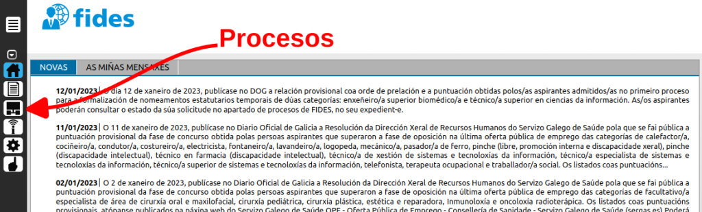 Una vez dentro del FIDES debes seleccionar “Procesos” en el menú de la izquierda.